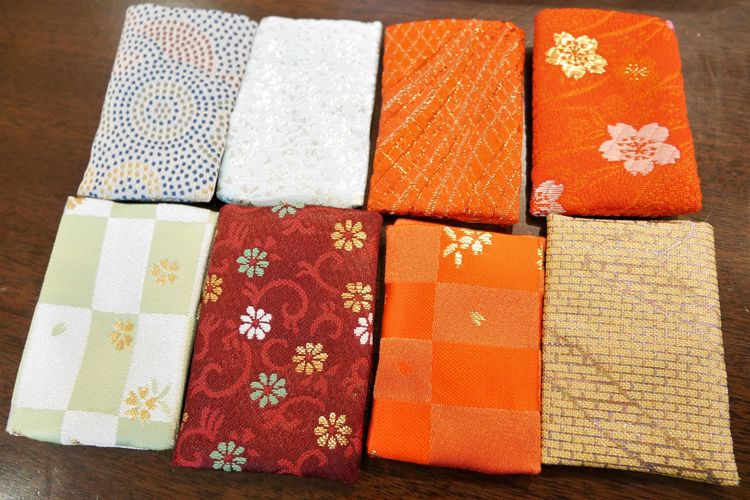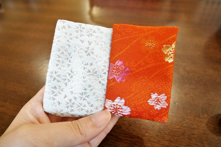 薄い水色に小さな銀の桜が散りばめられた袋と、赤地にカラフルな桜の袋を選びました。