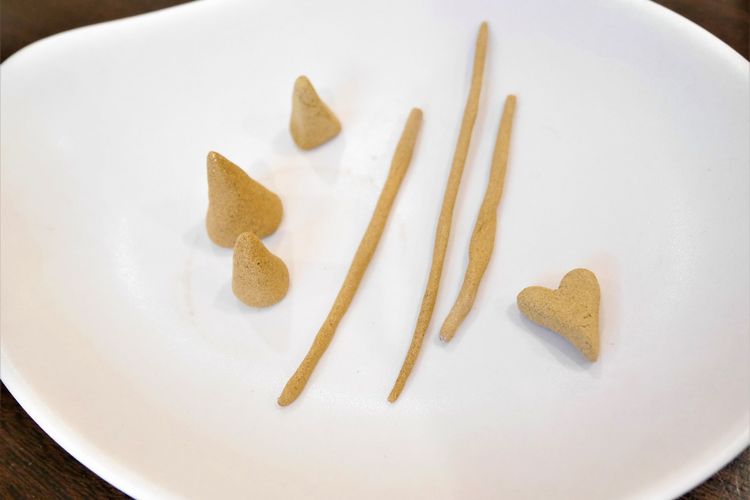 こちらのコースでは、粘土細工の様に好きな形のお線香を作ることができます♪