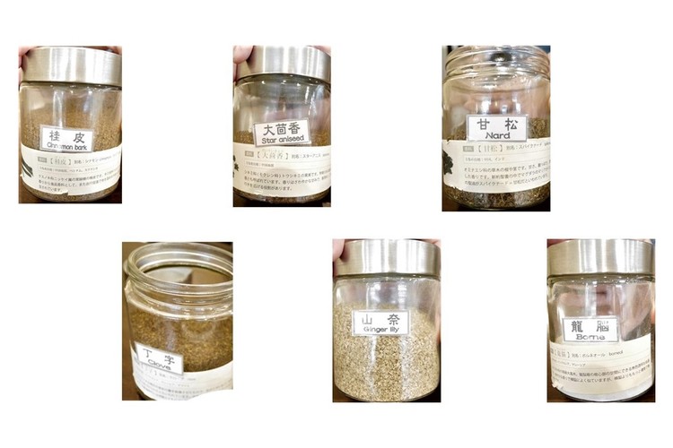香源さんの練香作り体験では、六種の薫物をイメージした調合が用意されていますので、お好みのテーマを選んでください♪