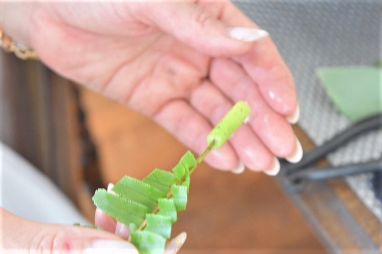気を付けないと、葉を取り過ぎてスカスカになってしまうので、一枚ずつ丁寧に取っていきます。