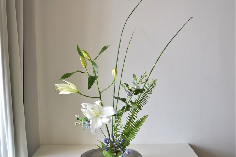 自由花は定まった型がなく、現代の生活スタイルに合わせ、家でも手に入りやすい花材で自由に生けていくのが特徴です。