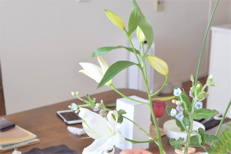 そこから生けるものを選び、美しく生けるために花と向き合い構図を考えたりすることで無心になることができ、日常から心がリセットされるように感じました。