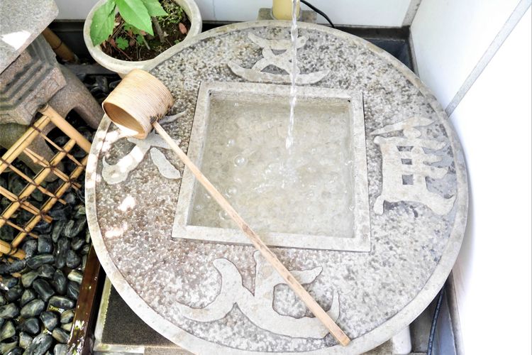 有難い蹲で、神社で手を洗うように左手、右手、持っていた柄杓の順に洗って心を清めていきます。