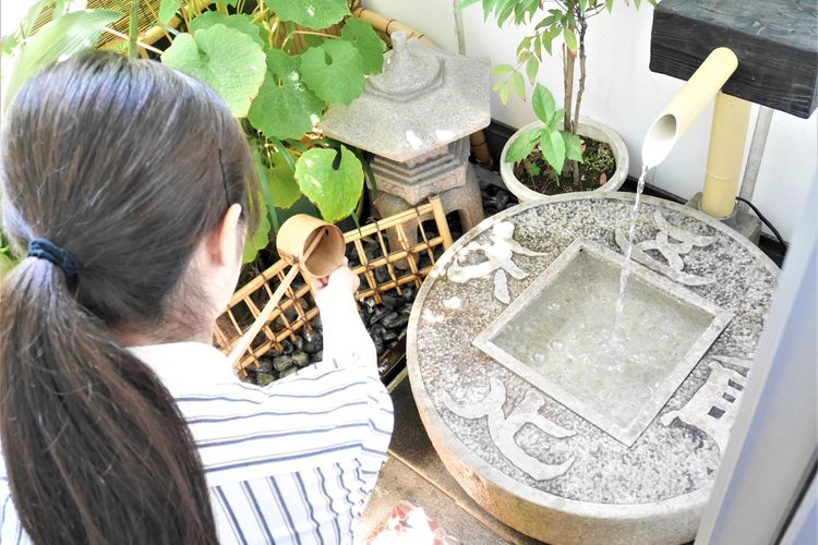 お茶室に入る前に、手を清めるのと同時に心を清めます。