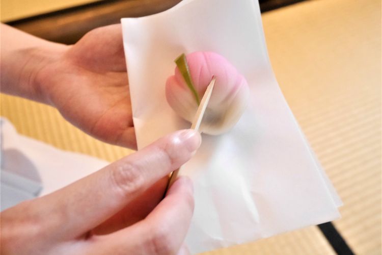 私はピンク色の「あやめ」を象った和菓子をいただきました。