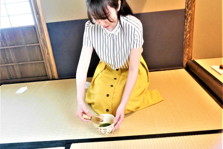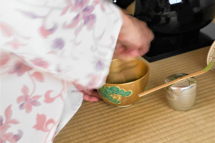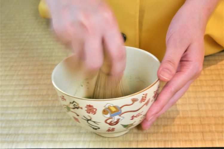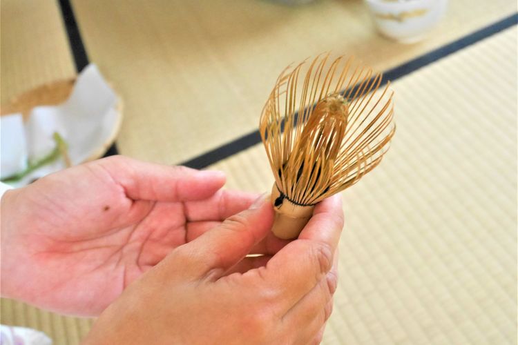 お茶を点てるのはホイップクリームを作る時のように茶筅を素早く回すのかと思いましたが、数字の「1」を描くように前後に素早く動かすことに驚きました。