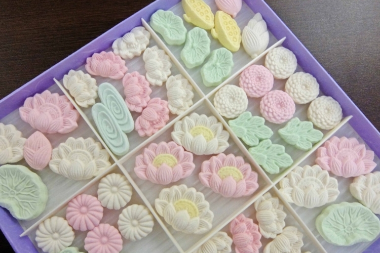 雲平は、寒梅粉と砂糖と蜜を合わせて練り、着色し薄くのばし、型で抜いて乾燥させた干菓子です。