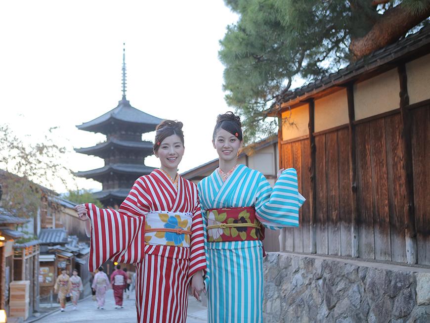 二寧坂・三年坂や八坂五重塔・八坂庚申堂など有名なスポットも数多くありますので、17:00の返却時間まで京都のロケーションをお楽しみください。