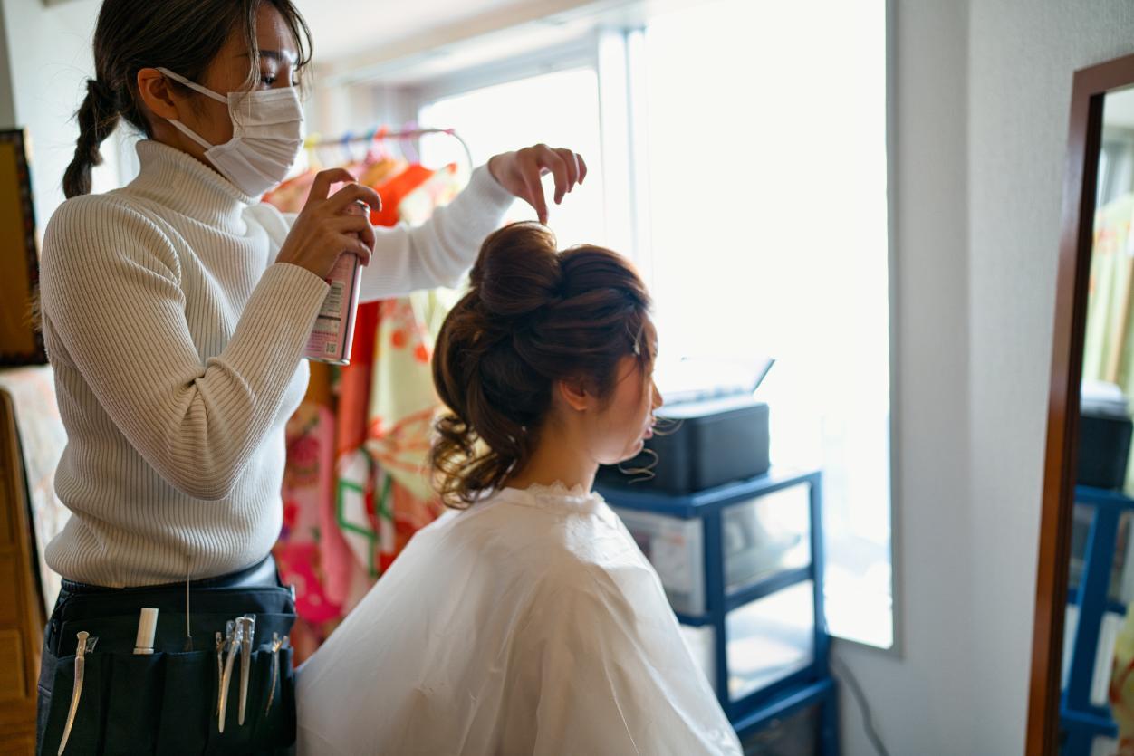 基本料金に含まれるヘアセットを新日本髪に変更する場合は、追加料金をいただきます。