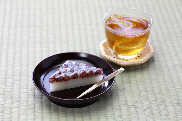 その氷に見立てた三角の「ういろう」に、魔よけの力があるとされる小豆をのせた和菓子が水無月です。