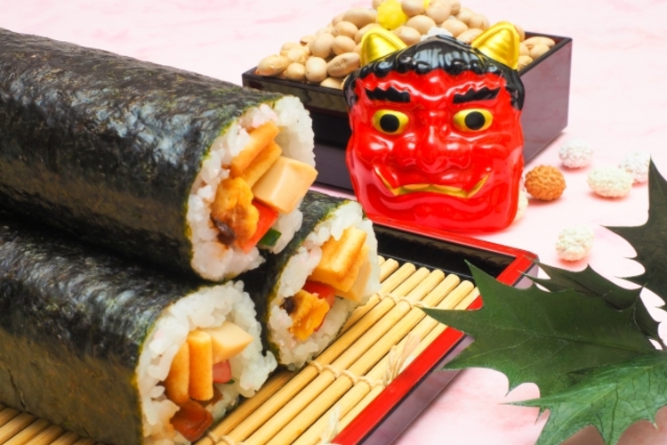 節分の夜、恵方(その年によいとされる方角)を向いて丸ごと1本無言で食べきれば、1年間健康に過ごすことができるとされています。