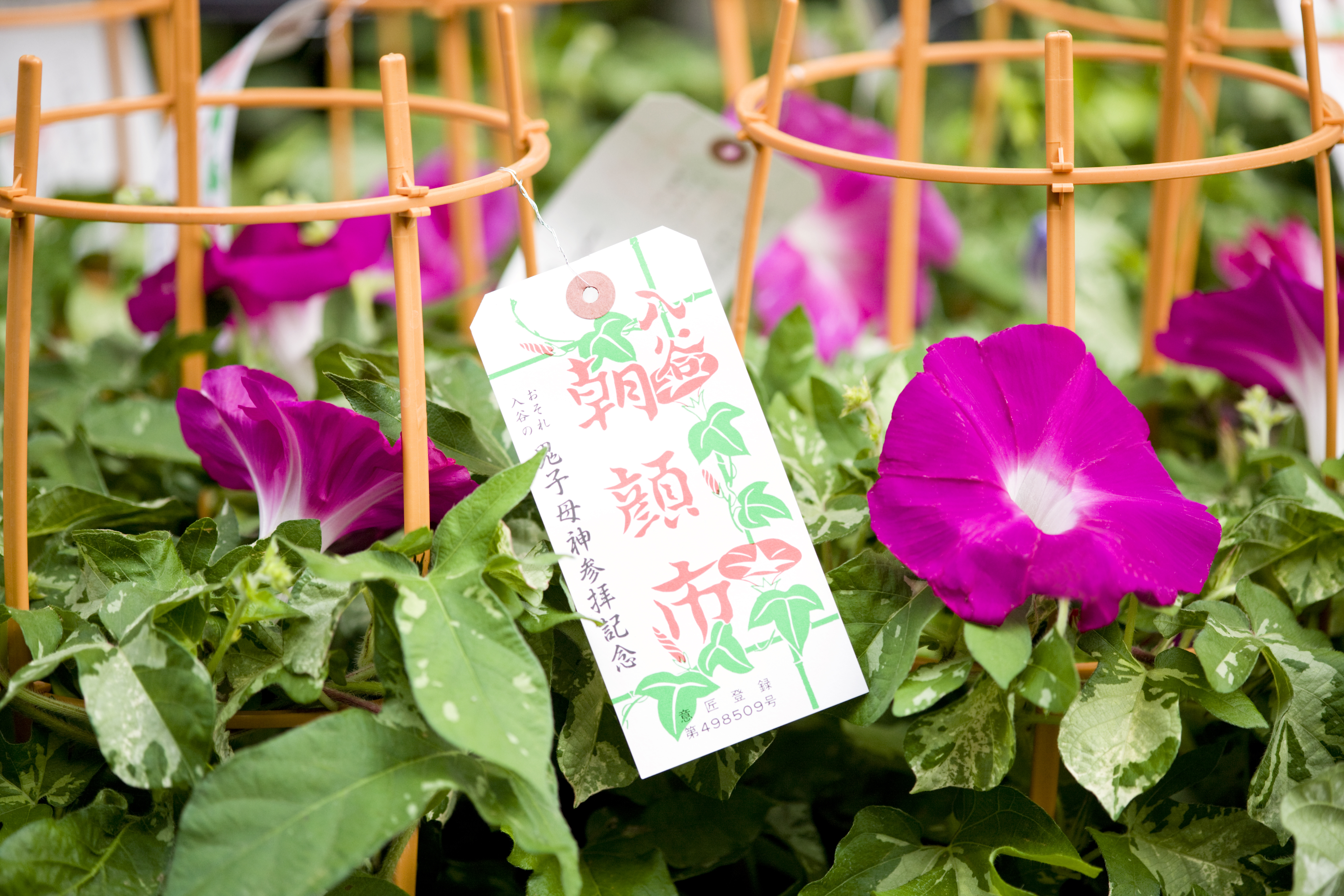 また、朝顔市の開催期間中は、入谷鬼子母神では朝顔まつり限定御朱印とブローチ仕立ての“朝顔守り”が配布されます。