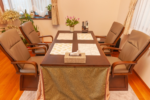 ダイニングテーブルで食事をする際、こたつなら足元の寒さ問題に悩むことがなくなるかもしれません!