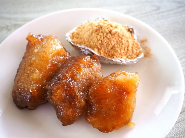 この食べ物は「灰汁巻き」と呼ばれ親しまれており、きなこや砂糖をかけて味付けして食べることが多く、子供からも人気があるそうです。
