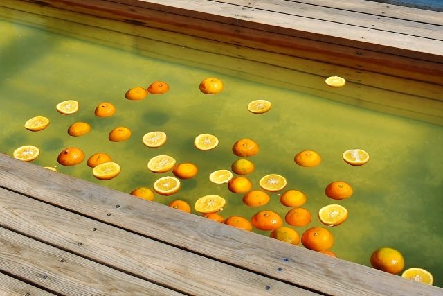 季節湯とは、旬の植物を湯船に入れて楽しむ入浴文化のことです。