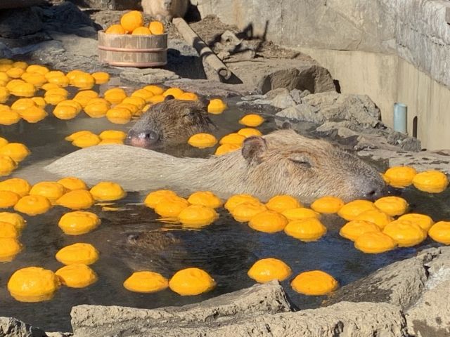 冬至と“湯治”、柚子と“融通をかけて「お湯に入って融通よく」という意味が込められているのだとか。