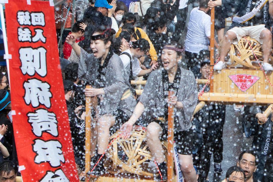 別府温泉祭りの代名詞ともいえる“湯ぶっかけまつり”。