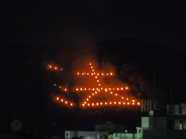 午後8時20分に、曼荼羅山(まんだらやま)で「鳥居」の形が点火