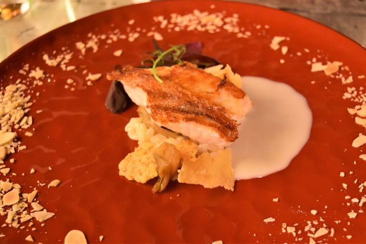 “オニカサゴとシューシノワのロティ 軽いアサリのクリームソースと共に”です。