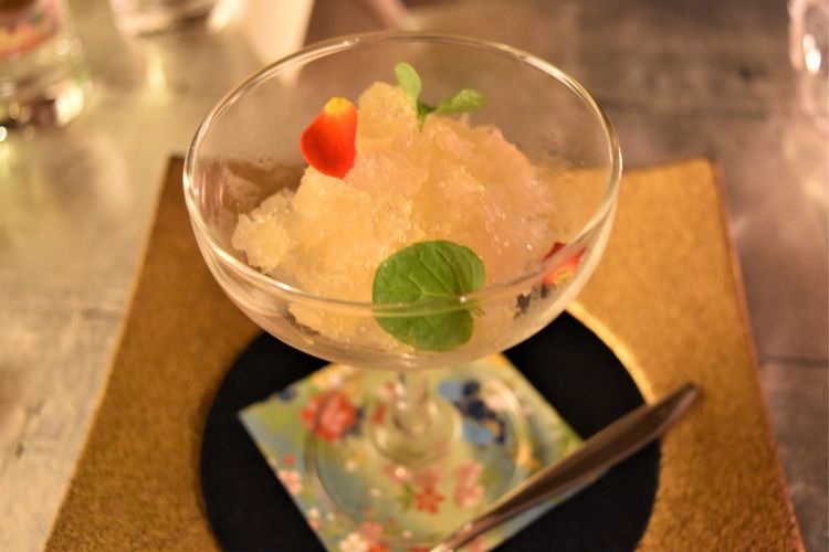 ゆずのシャーベットとミントが口の中を完全にリセットしてくれました。