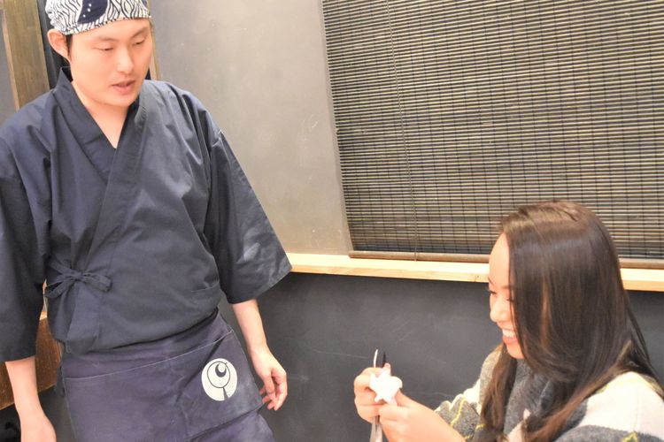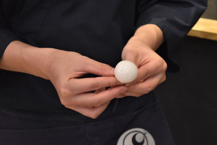 最初は鷲頭さんが、飴を写真のように真ん丸な状態にして渡してくれます。