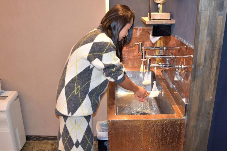 まずは、飴細工の中に小さなゴミが入ってしまわないよう、手を洗います♪