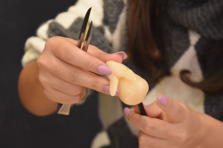 実際に飴に触れる前までは粘土のような堅さを想像していたのですが、粘土よりもはるかに柔らかく、かなり難しかったです!