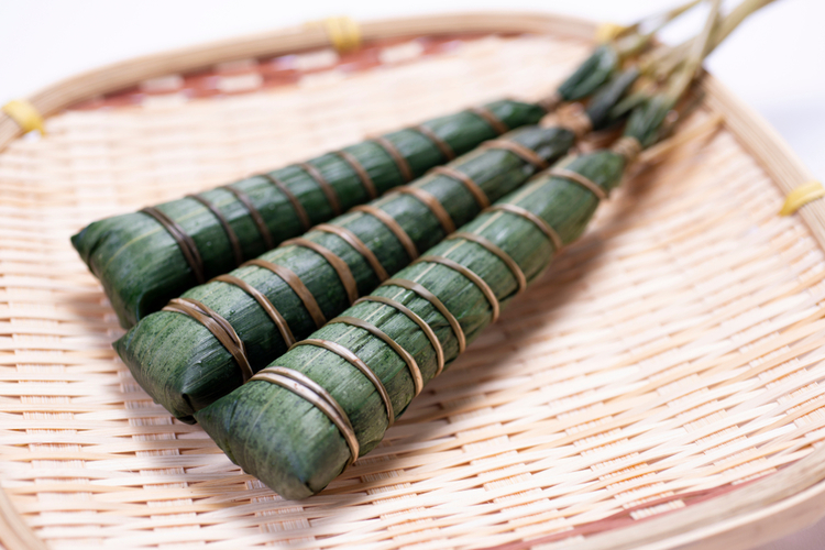 戦国時代の中国で、正義感が強く国を思う心が強いことから慕われていた屈原(詩人)の命日に、村人が供え物をしても悪龍に盗まれてしまうため、龍が嫌う楝の葉で包んで五色の糸で縛って無事に届けられたことが、粽の始まりとされています。