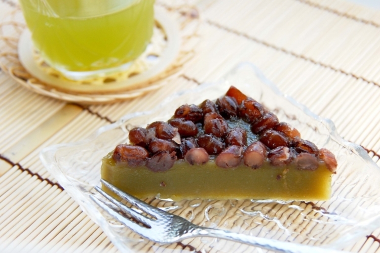 白い外郎に小豆をのせたものが一般的ですが、外郎に黒糖を混ぜた茶系のものや、抹茶を混ぜたグリーン系のもの、小豆の代りに青えんどう豆をのせたものなど、バリエーションが増えてきています。