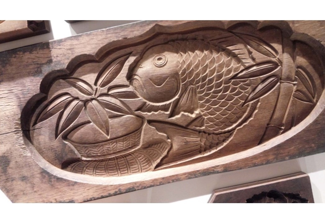 木型は桜や樫などの硬い木が材料に用いられ、実際の落雁のデザインとは左右で凸凹が逆になるように彫られます。