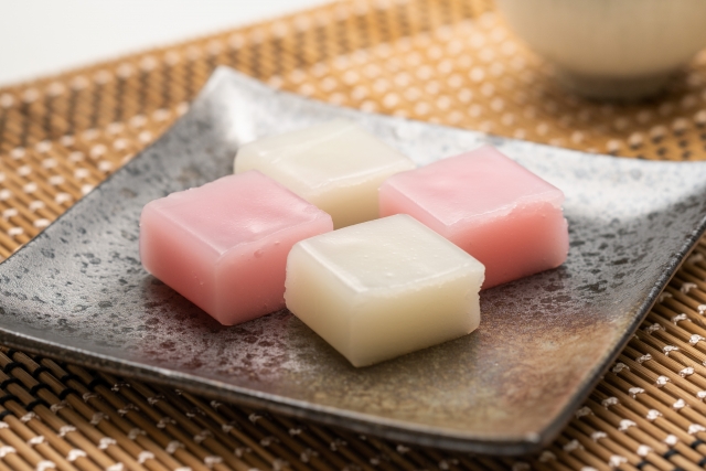 食感は求肥に近いですが、求肥は主にもち米からできる粉を使うため、原材料が異なります。