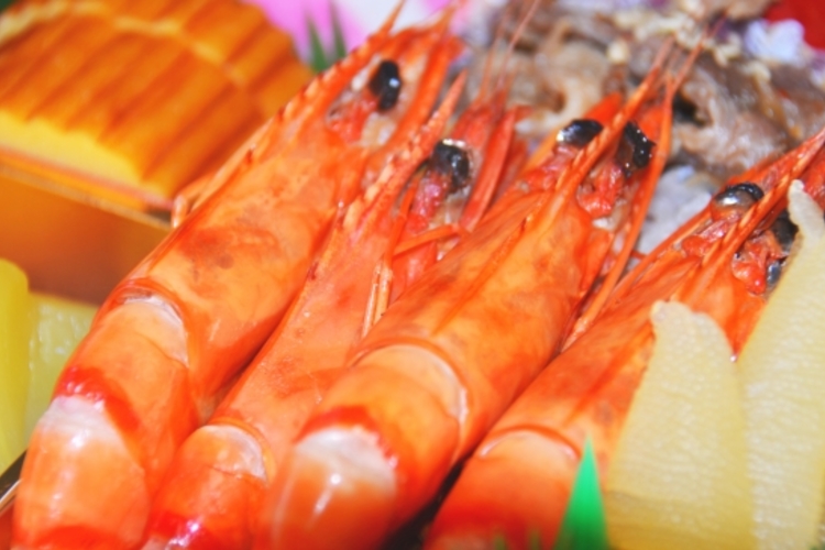 エビは茹でる・焼くなど、加熱すると丸まる性質があることから、腰が丸くなるまで健康に長生きするという願いが込められています。