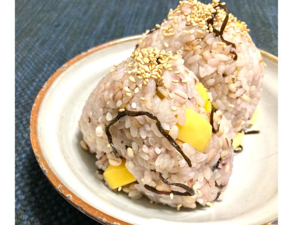 もち米と雑穀を入れて炊いたもちもちの栗おこわおむすびは、栗ご飯とはまた違った食感を楽しむことができますよ♪