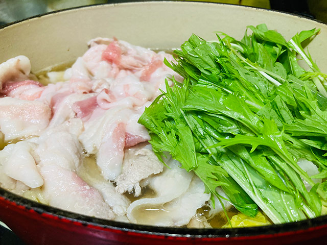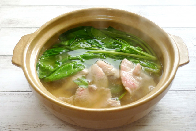 豚肉とほうれん草などをシンプルにさっと茹でて、ポン酢を付けながらいただきます。
