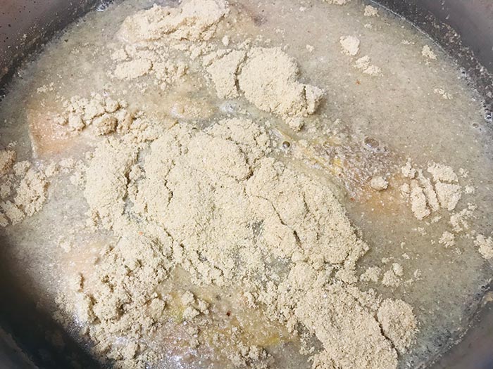 4)大きな鍋にたっぷりの水、たけのこを入れ、表面を覆うくらいにたっぷり米ぬかを入れます。