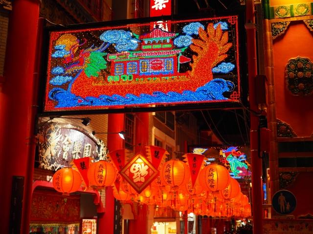 長崎新地中華街のシンボルといえば、アーチ型の“中国イルミネーション”。