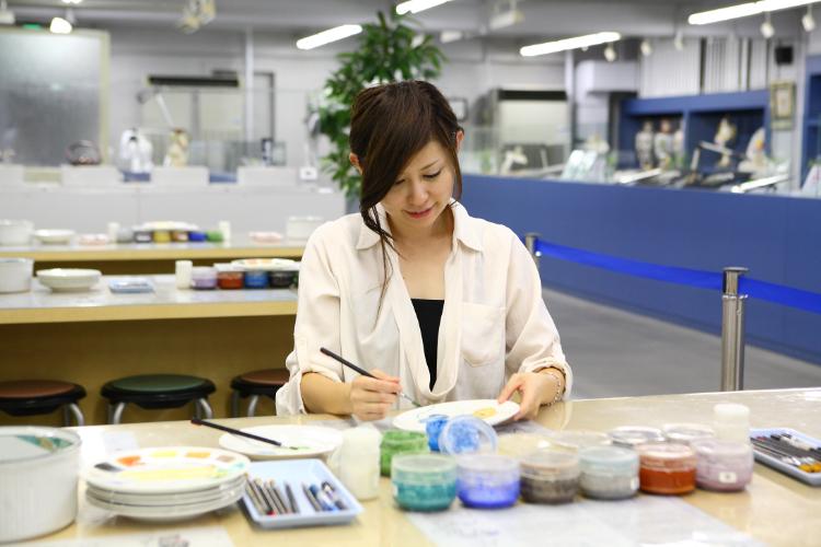 市内にいながら、緑あふれる敷地内で陶磁器工場や展示を見たり、絵付け体験などができます♪