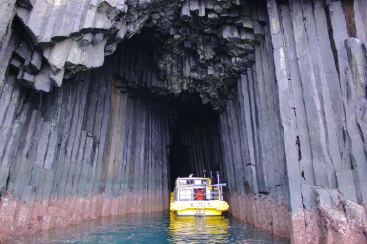 断崖には、260万年以上前に噴出した溶岩が冷却されたことにより誕生した、六角形に形成された割れ目を見ることができます。