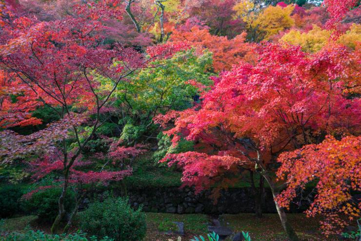 雨の日には、晴れの日よりもしっとりとした風景を、紅葉時期にはアート作品のような風景を愛でられると評判です。