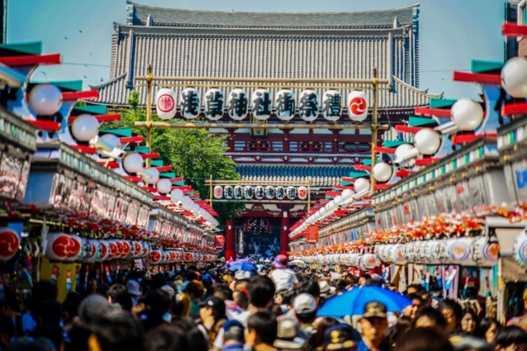 江戸下町の風情を残した勇壮で華やかなお祭りで、町会毎にお揃いの半纏を着た勇ましい担ぎ手達が、威勢良く御神輿を担ぎ浅草の町全体を練り歩きます!