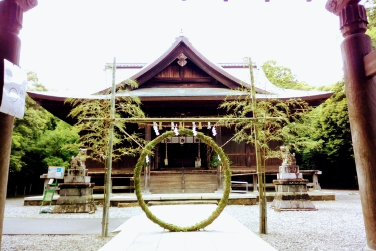 社殿前に設置された茅の輪をくぐって参拝することで、罪や穢れを取り除くことができ、千日のご利益があると信仰されています。