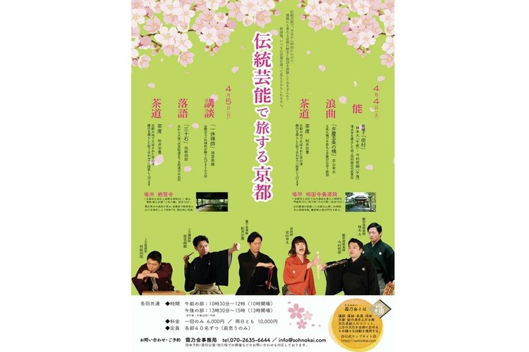 そんな霜乃会主催の「伝統芸能で旅する京都」という企画が、令和2年(2020年)4月に京都の寺院を会場にして開催されます。