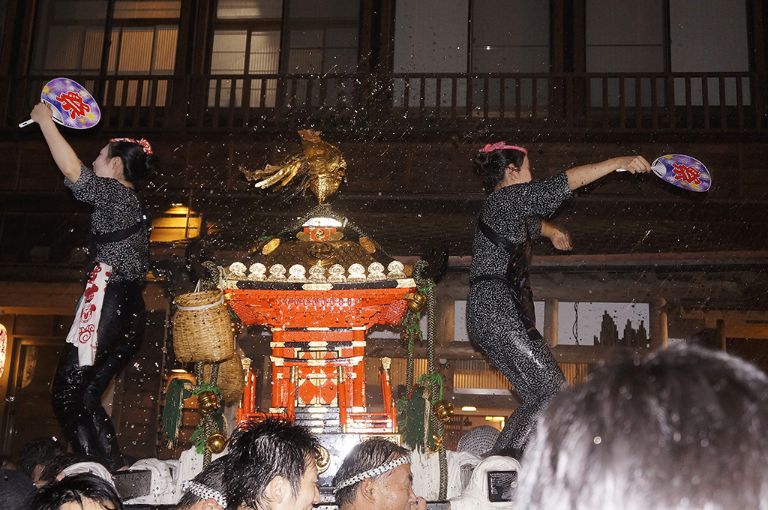 毎年8月10日に開催される「東山温泉お湯かけまつり」。