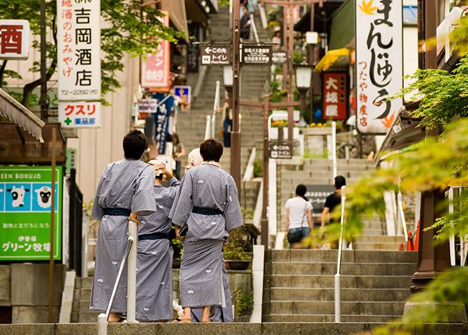 都内からアクセスもしやすく、露天風呂や足湯はもちろん、神社やお寺などの観光や食べ歩きグルメなどでも人気の「伊香保温泉石段街」があることでも有名です。