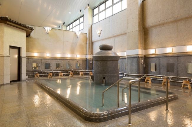 道後温泉商店街の中央にあり、浴室が花崗岩で造られた蔵屋敷風で、落ち着いた趣ある温泉です。