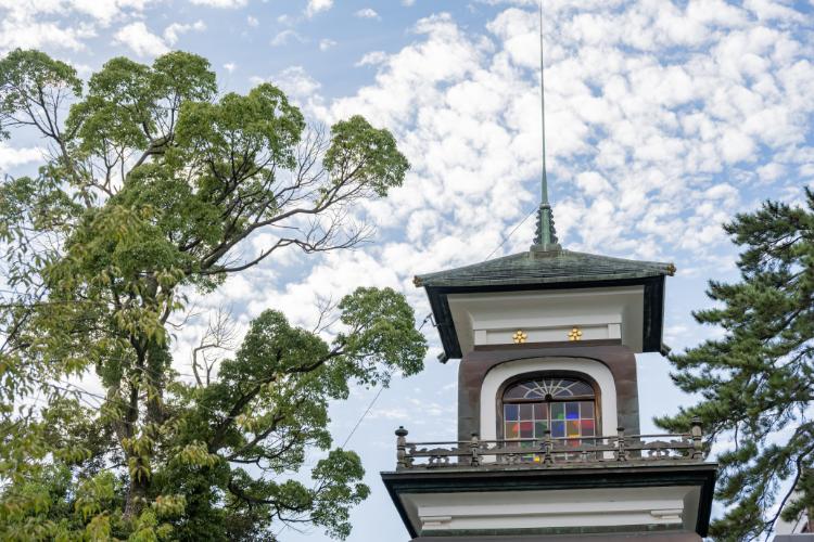 ギヤマンの上には日本最古の避雷針がそびえ、当時の建築技術のすべてを結集した姿を神門から感じ取ることができます。