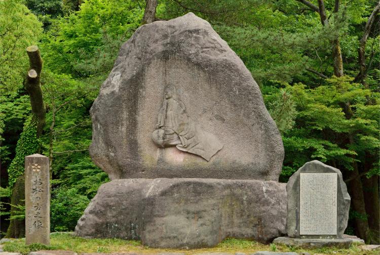 「お松の方像」は、大きな岩に彫られた、たおやかな姿の彫り絵です。