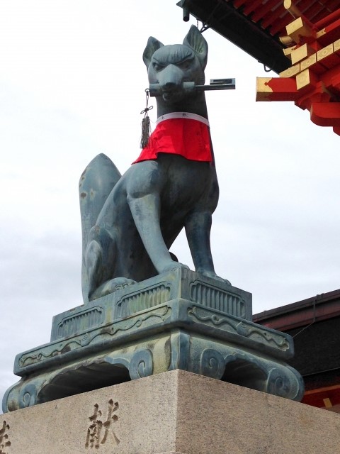 伏見稲荷大社にきつね像が祀られているのは、きつねが「稲荷大神様のお使い」であるためです。