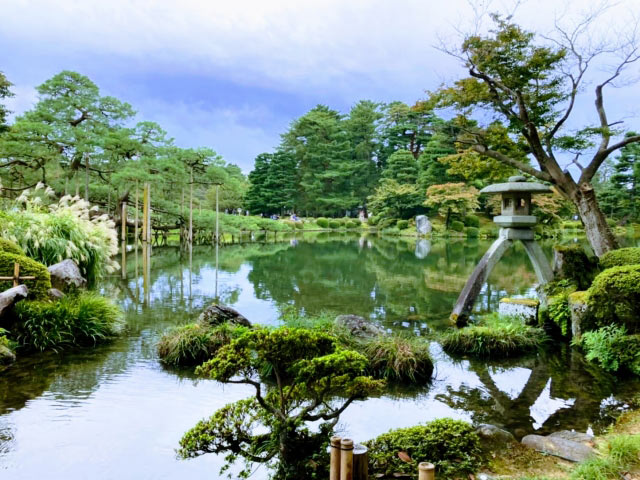 巨大な池と山々を多彩な木々で彩る、日本三名園の一つ、「兼六園)(石川県金沢市)を挙げる方も多いかもしれません。