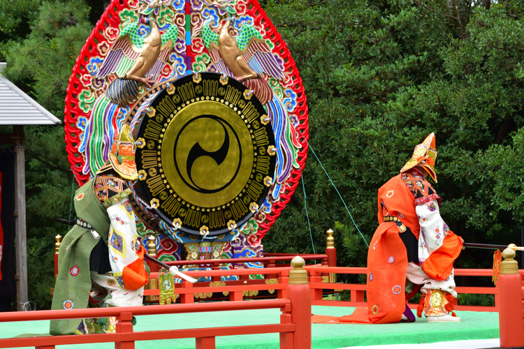 奈良時代には厳かな音色の雅楽に変化を遂げ、後の平安時代には宮廷音楽として栄えました。